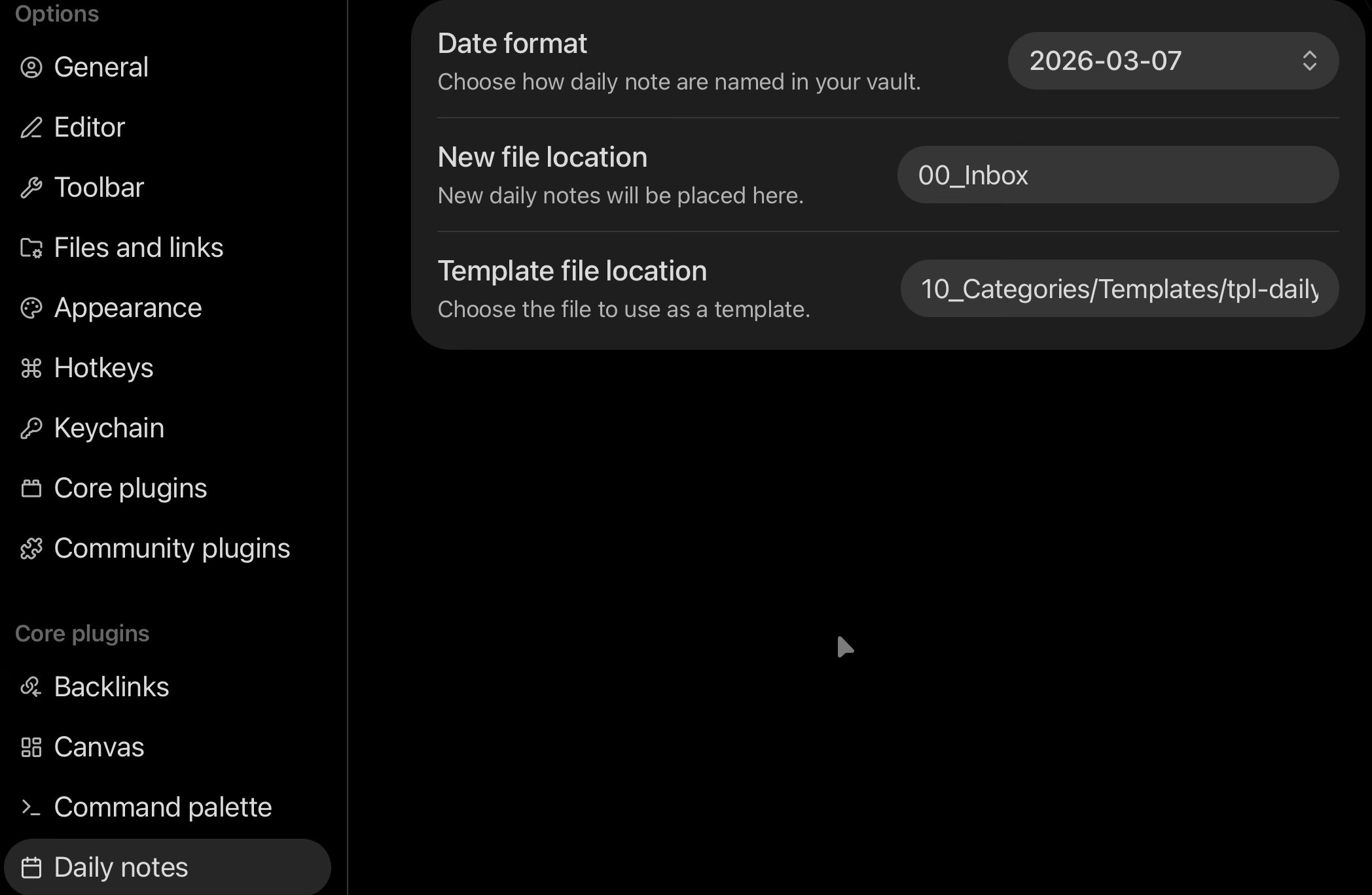 Daily notes settings