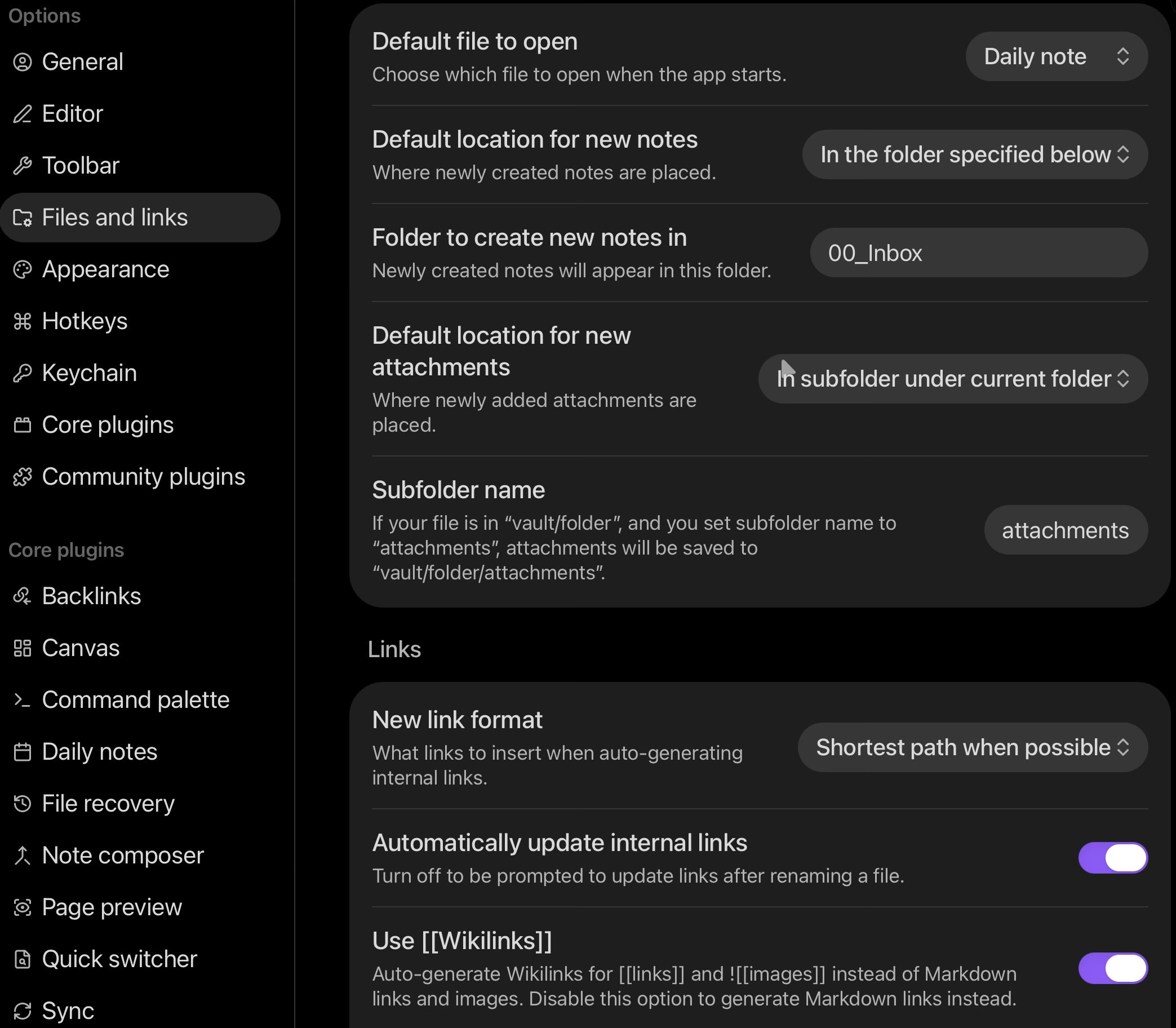 Files and links settings